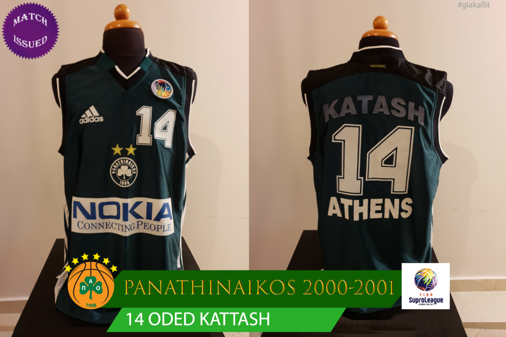 Israeli Oded Kattash was one of the staring players of Panathinaikos team that won the Euroleague in 2000. However, the 2000-2001 season suffered serious injuries and played little. This jersey was never worn by him in the race as he never played in Final 4 but is still a unique piece.