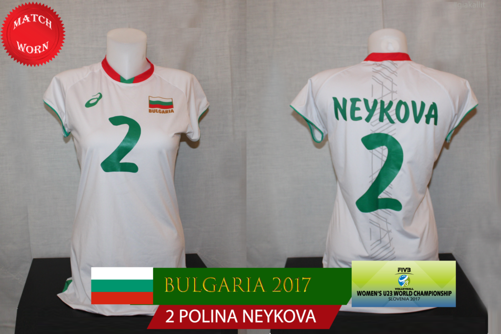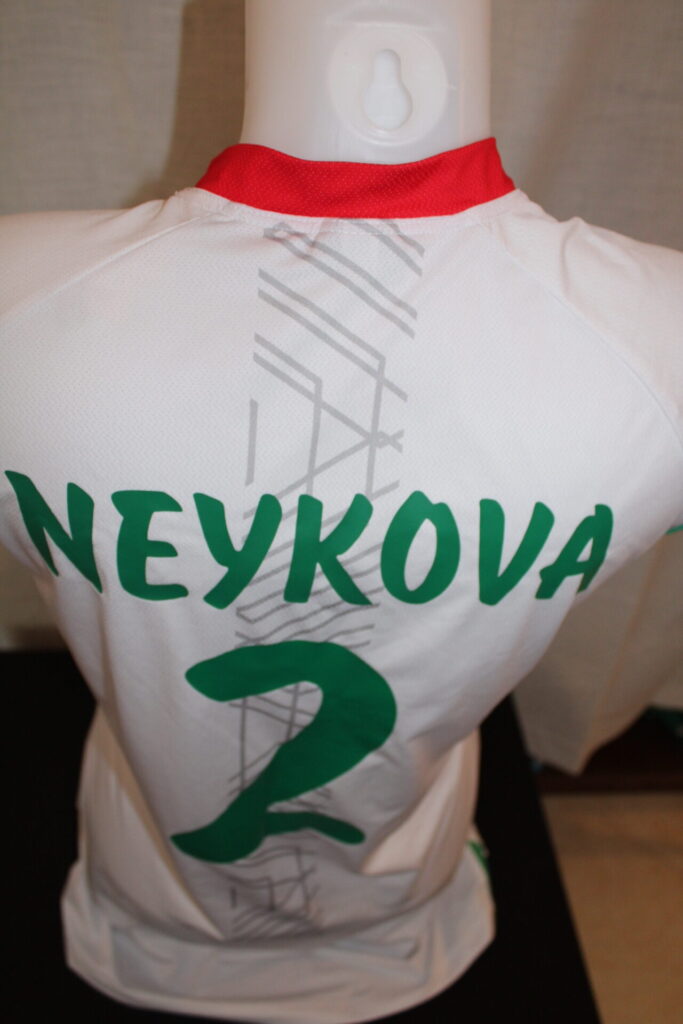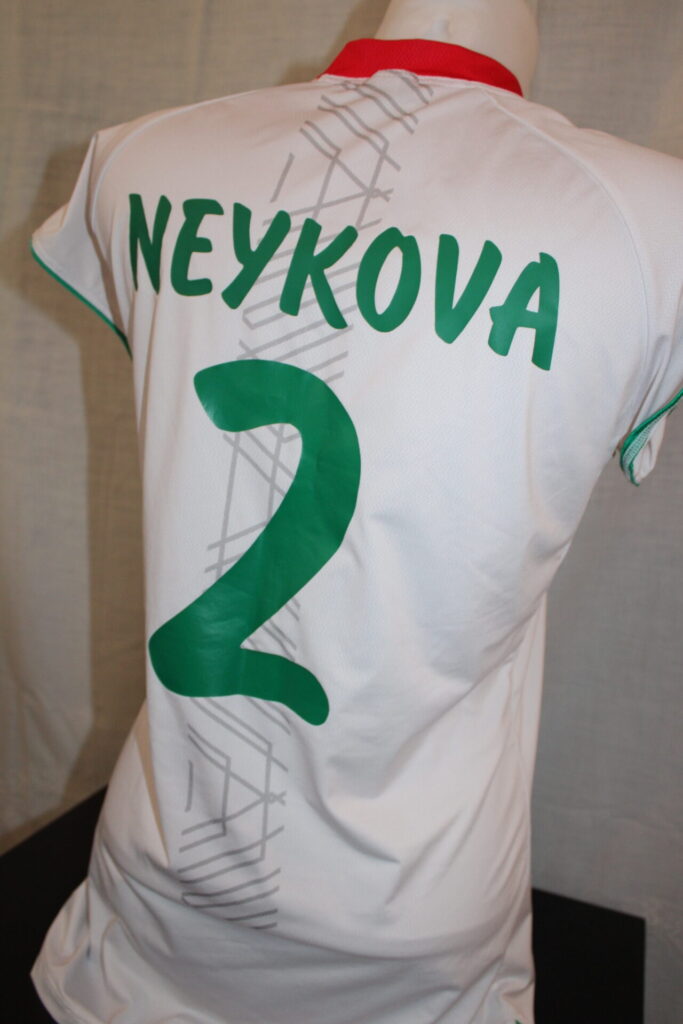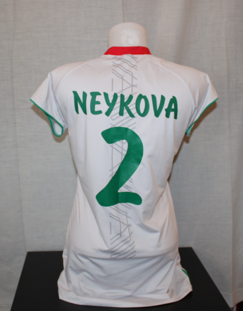 Neykova, who was a CSKA Sofia Volley player that year, was the main setter of the national team. This shirt was worn during the World Championship. Neykova put it up for auction to support charitable action in her homeland.
