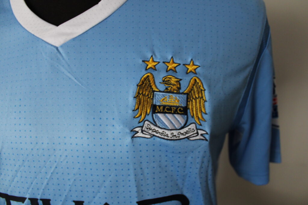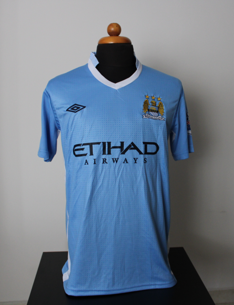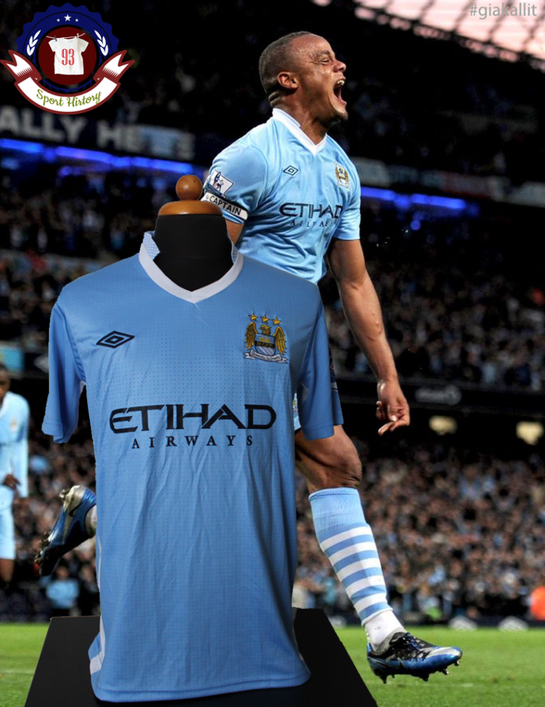 This jersey was worn during the impressive 2011-2012 season and was associated with the return of the "Citizens" to the titles. The Belgian, Vincent Kompany, was the team captain and the leader of the defense and became the first person to lift the Premier League trophy at the Etihad Stadium.