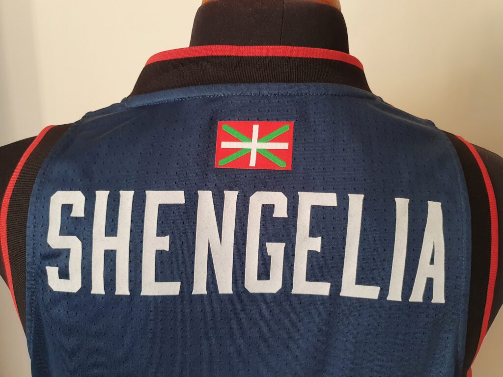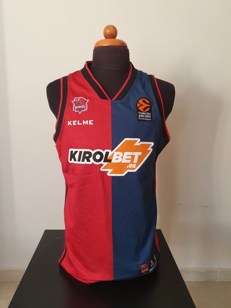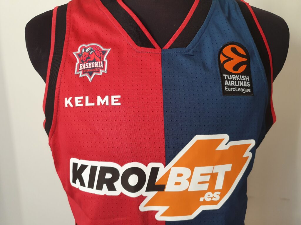 This jersey is the one that was basically worn in the Euroleague matches. However, the number of the player on the front and the “Vitoria-Gasteiz” on the back are missing from the jersey. At the height of the neck, on the back, there is the flag of Basque.