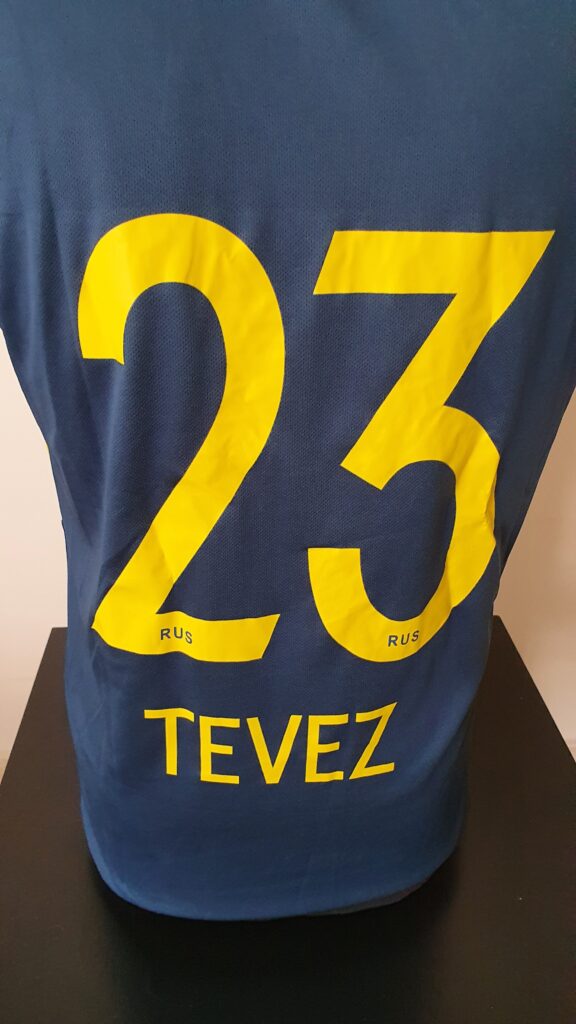 This jersey is the same as the one worn by Carlos Tevez in the first final. There are match details with the details of the first match in which Tevez entered as a change in 73'.