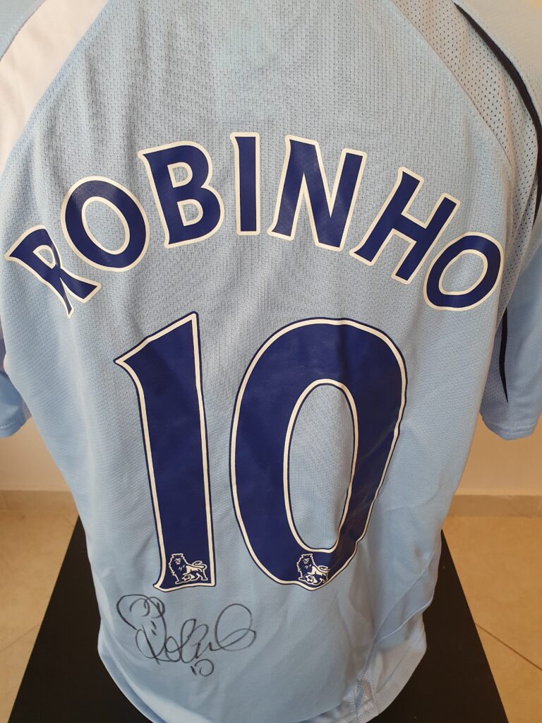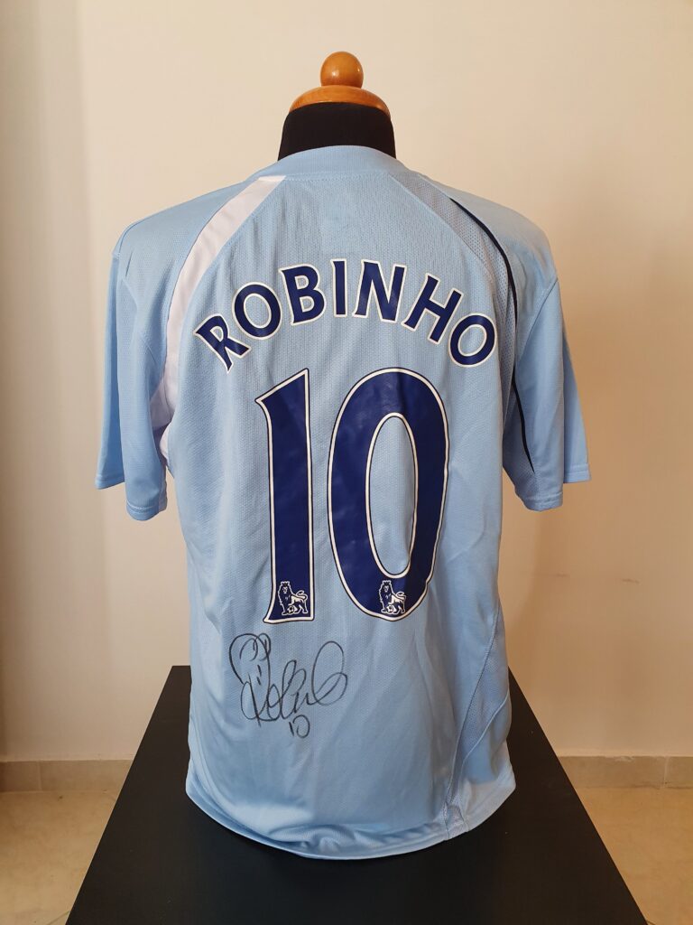 Robinho was one of the top scorers in the Premier League that season with 14 goals, behind Anelka, Cristiano Ronaldo and Gerrard in the list of scorers. This jersey is signed by the Brazilian striker.