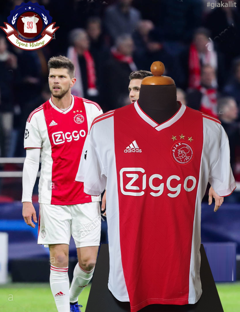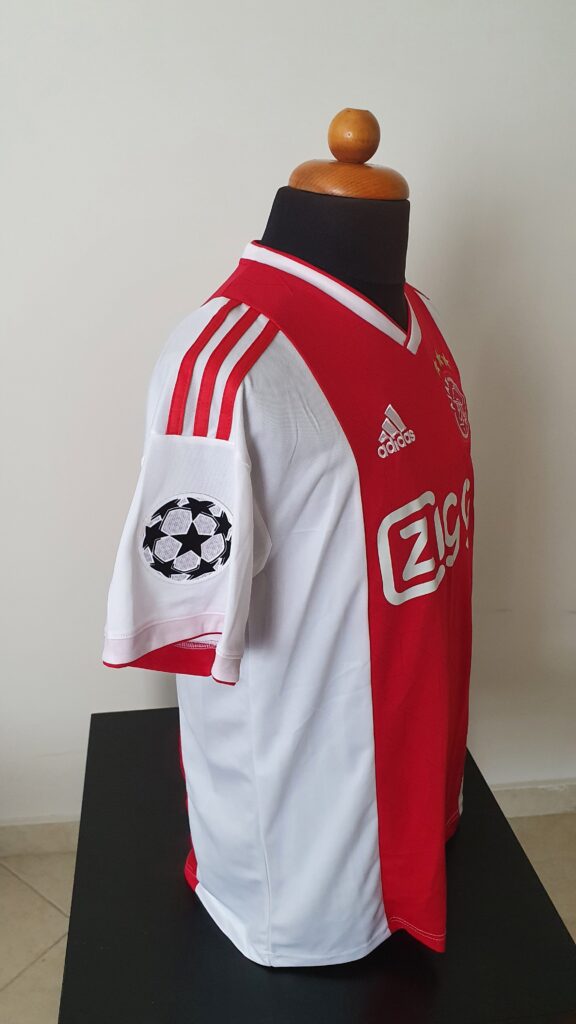 Ο Κλας Γιαν Χούντελααρ είχε 11 συμμετοχές στο Champions League εκείνης της χρονιάς και πέτυχε 4 γκολ. Η φανέλα του Άγιαξ ήταν για ακόμα μια χρονιά η κλασική λευκή με την μεγάλη κόκκινη λωρίδα. Τα patch του Champions League υπήρχαν στα μανίκια σε όλα τα παιχνίδια της ομάδας στη διοργάνωση ενώ στο πίσω μέρος, πάνω από το όνομα υπήρχε το λογότυπο ΧΧΧ. Το ΧΧΧ είναι ένα σύμβολο που συνοδεύει εδώ και αιώνες την πόλη του Άμστερνταμ. Υπάρχουν διάφορες θεωρίες ως προς το τι συμβολίζει. Μια θεωρία είναι ότι οι τρεις Xs αντιπροσωπεύουν τα τρία προβλήματα που αντιμετωπίζει η πόλη κατ‘ επανάληψη σε όλη την ιστορία: πλημμύρες, πυρκαγιές, και τον Μαύρο Θάνατο. Μια άλλη θεωρία υποθέτει ότι η Xs αντιπροσωπεύουν στην πραγματικότητα τα παραδοσιακά τρία φιλιά που η ολλανδική ανταλλαγή χαιρετισμό και λέει αντίο. Η θεωρία που είναι πιο πιθανό πιο κοντά στην αλήθεια είναι ότι οι σταυροί ελήφθησαν από το οικόσημο της οικογένειας που κάποτε ιδιοκτησία του Άμστερνταμ, την οικογένεια Persijn, και αφορούν την οικογενειακή τρεις ιδιότητες: Άμστερνταμ, Ouder-Amstel, και Nieuwer-Amstel (σημερινή Amstelveen). Το μαύρο χλωμό, ένας εραλδικός όρος για μια κάθετη γραμμή, που τρέχει κάτω από την ασπίδα θα αποτελέσει τον ποταμό Άμστελ, στην οποία βρίσκονταν οι τρεις αυτές πόλεις.