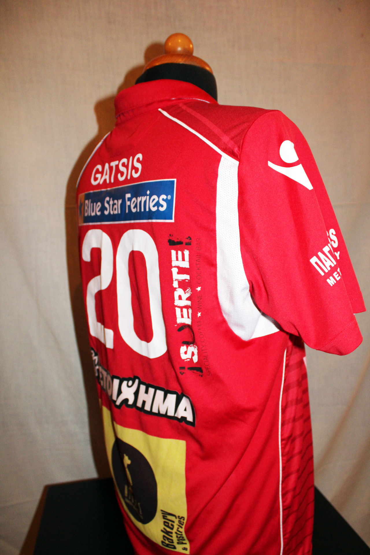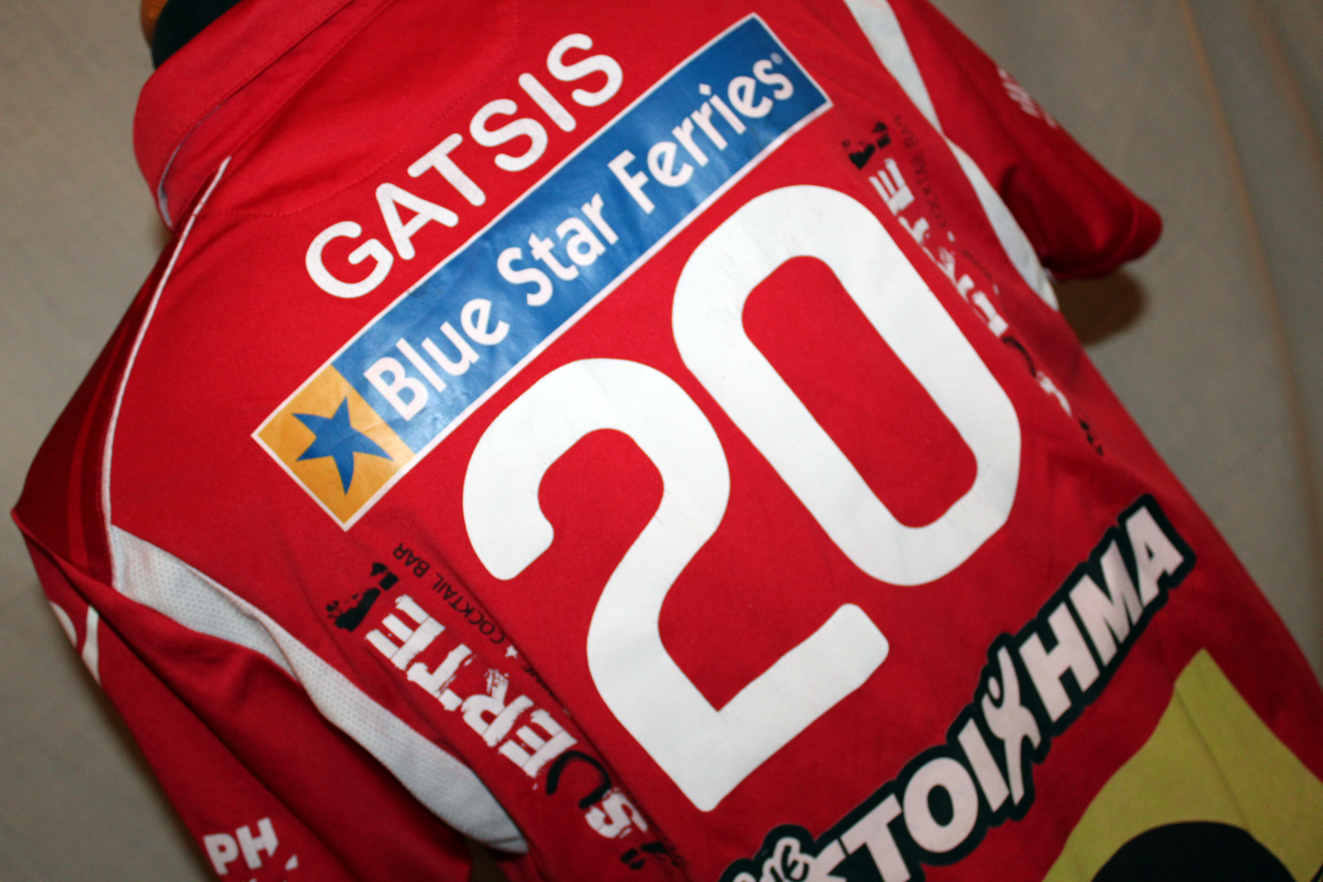 Tassos Gatsis was one of the main middle-blocker of Foinikas and played the most matches of the season. This jersey was worn in all the tournaments that the team played. Due to the participation in the CEV Challenge Cup the names of the players were written in Latin characters while the team used its new renewed badge.