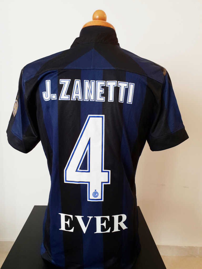 For him there was a special jersey which he wore once and only. "EVER" was written under the number on the back, as a result of which it is combined with his favorite number, 4, "ZANETTI 4 EVER". On the sleeve there was a logo based on the team's emblem and the initials of Argentina with its number, JZ4, and of course on the other sleeve the Serie A patch.
