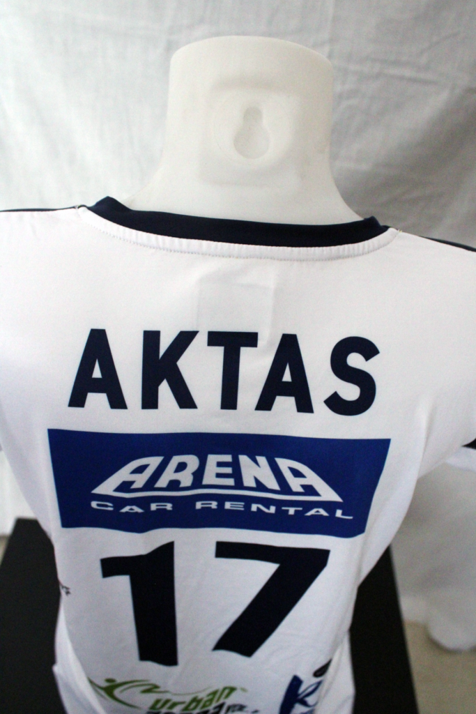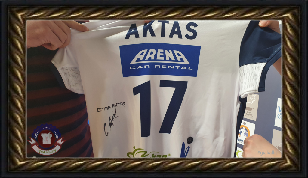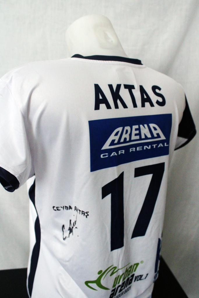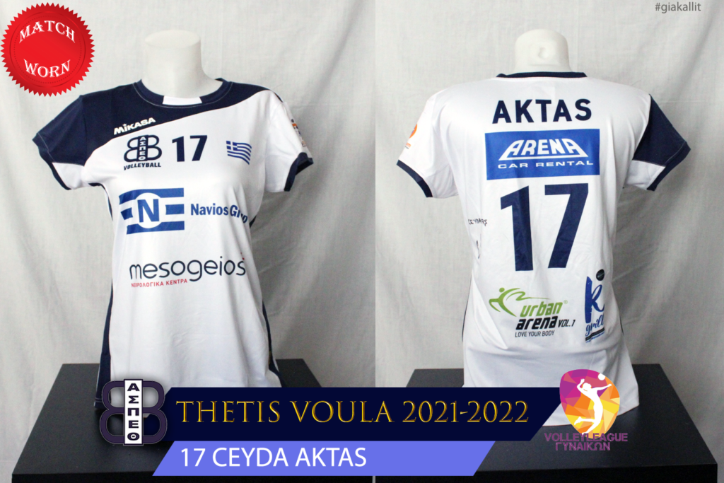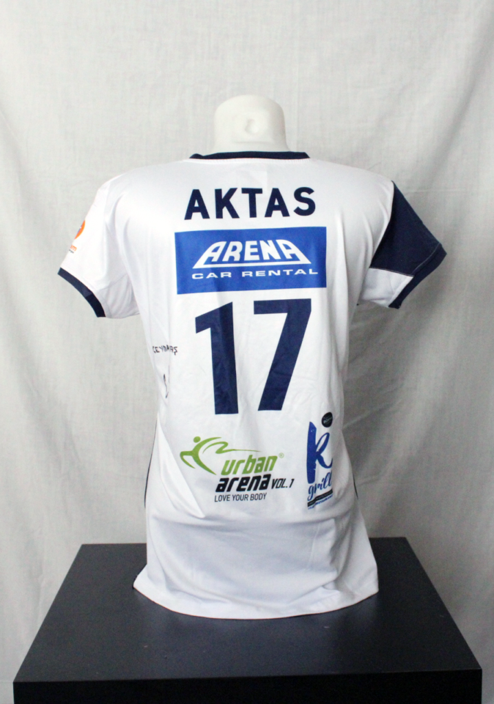 Ceyda Aktaş played for the first time outside of Turkey on behalf of Thetis. The Turkish former international player was one of the team's best players and won the MVP award of the 5th matchday for the game against AEK. Aktaş was in the starting six in almost all games of the season and excelled in most of them. The jersey has her signature and was used throughout the season in Greece and Europe.