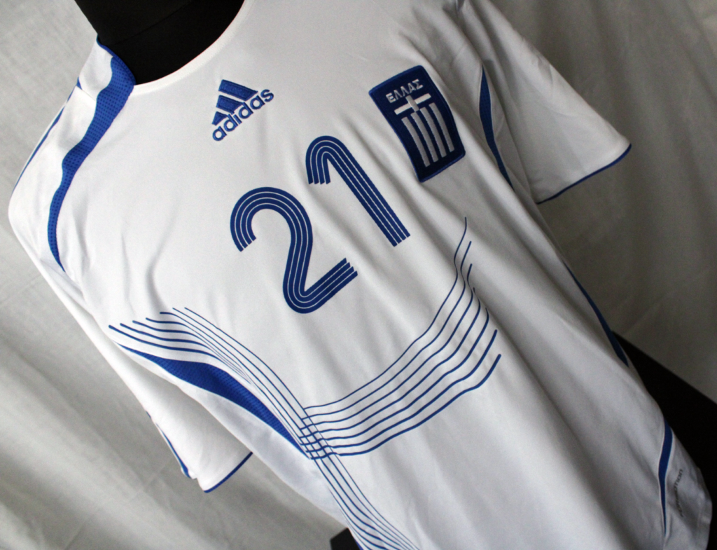 Kostas Katsouranis wore this jersey in the Melbourne friendly and probably in the other friendlies of that period as well. For this reason there is no patch on the sleeve of the shirt but at the same time it is formation technology, like those used by the teams wearing adidas at the time. This design was worn by the Greek national team in all the friendlies of 2006 and also in the qualifiers for UEFA Euro 2008.