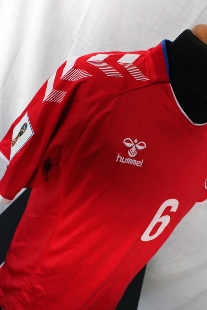 Andreas Christensen started all of Denmark's games at the 2018 World Cup. He was an important player for Denmark despite ultimately failing to qualify for the quarter-finals. This shirt is similar to the one worn by the Scandinavians in the event. The Danes wore the red kit in two of the four matches, against Peru and against France.