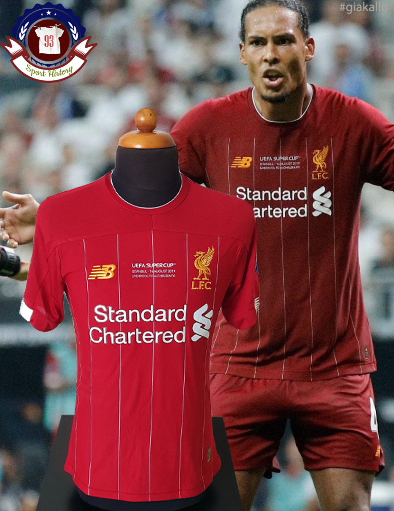 This shirt is a match version like the one worn by Van Dijk in the Istanbul final. It was inspired by Liverpool's 1984 shirt and was considered by fans of the team to be one of the most beautiful of the modern era. In fact, it turned out to be lucky one as at the end of the season the team emerged as champions of England after 30 years. The Super Cup version is distinguished by the relevant patches on the sleeves as well as the date and details of the match written on the chest. Van Dijk was a starter and played all 120 minutes of the match against Chelsea.