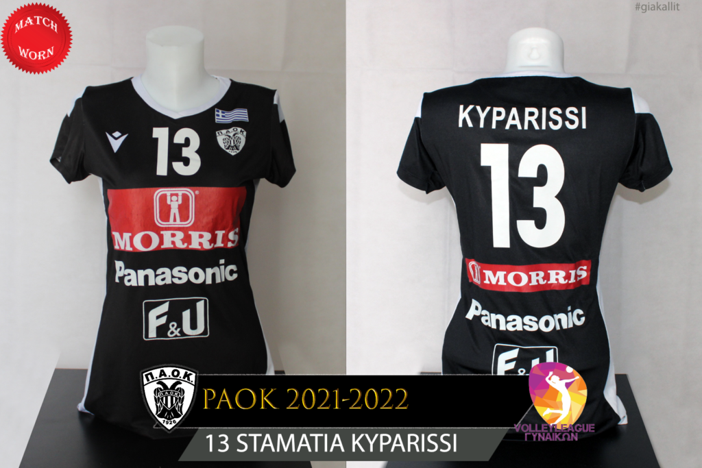 This jersey was worn by Stamatia Kyparissi throughout the season. The international outside hitter of PAOK was one of the key pieces of the team and despite being young she managed to establish herself in the Thessaloniki team.