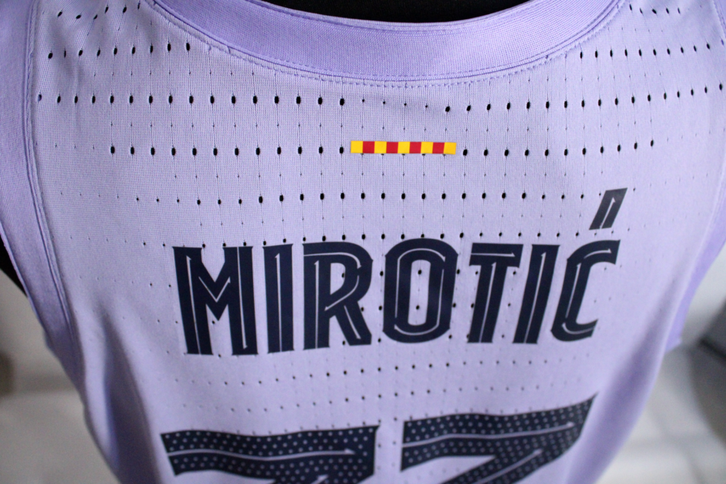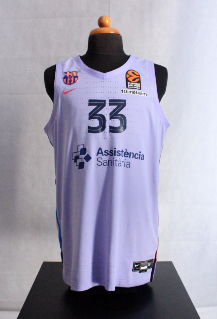 Nikola Mirotic used this jersey in many of the games of the Euroleague season. Mirotic was the Euroleague regular season MVP and the highest rated player in the Index Rating at 20.1. The purple shirt was Barcelona's alternative but it was particularly impressive both for its distinctive color and for the striking color in the team badge.