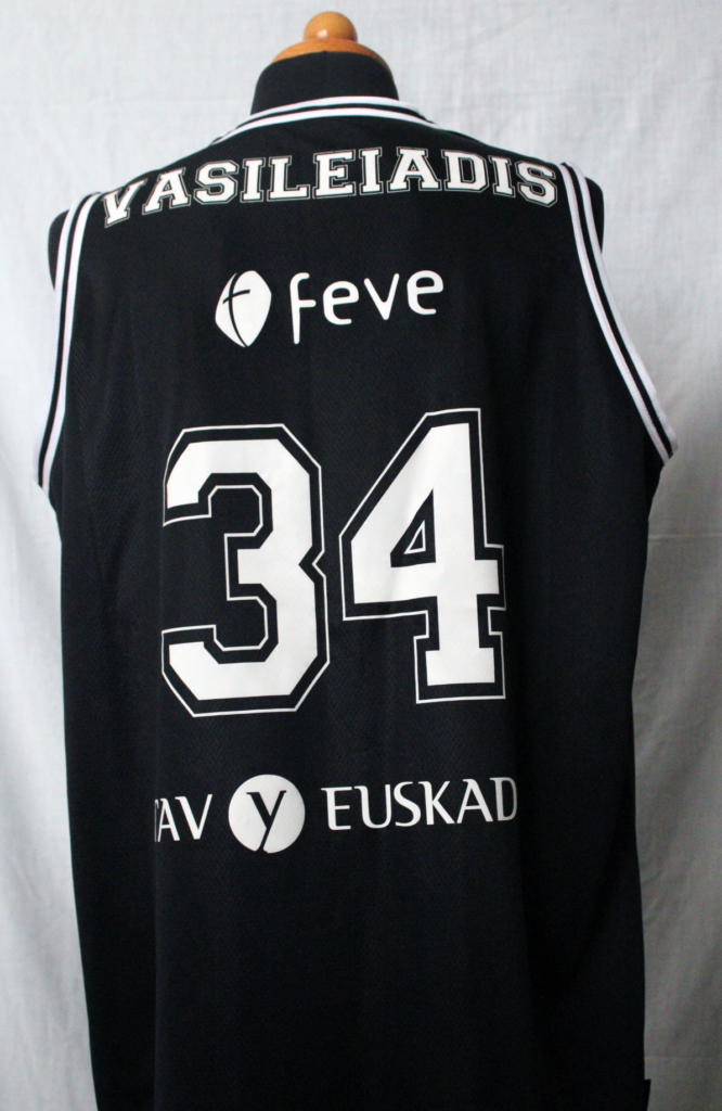 Kostas Vasiliadis was one of Bilbao's most valuable pieces. The Greek guard had 20 appearances in the Euroleague and 33 in the ACB, averaging 11.5 points per game, behind only Banic. This shirt was worn in the Spanish league and it shows because of the relevant ACB patch. In addition, it is characteristic that from that season onwards the teams of the Spanish league used to have the number below the sponsor on the front of the shirt, contrary to what was done until then.