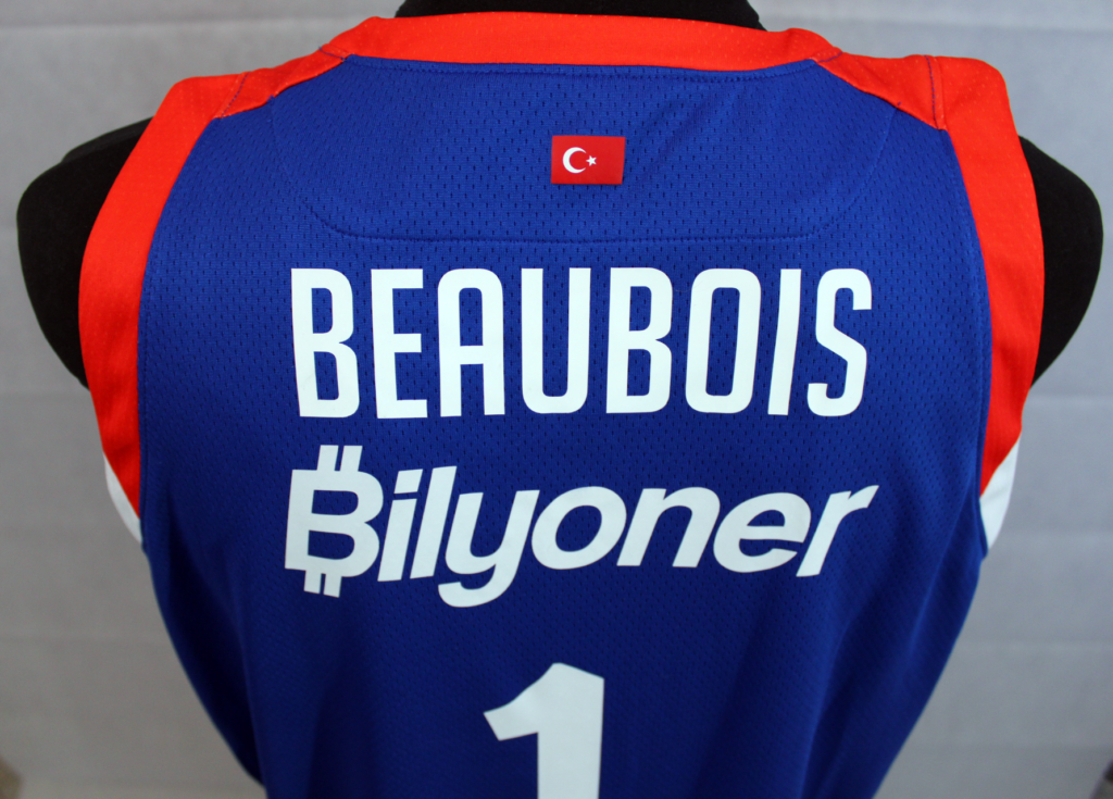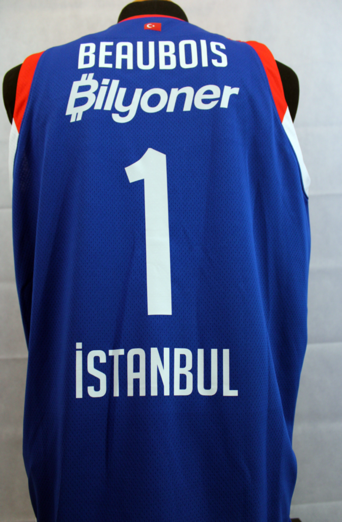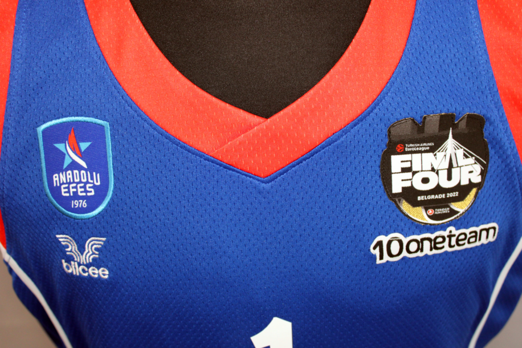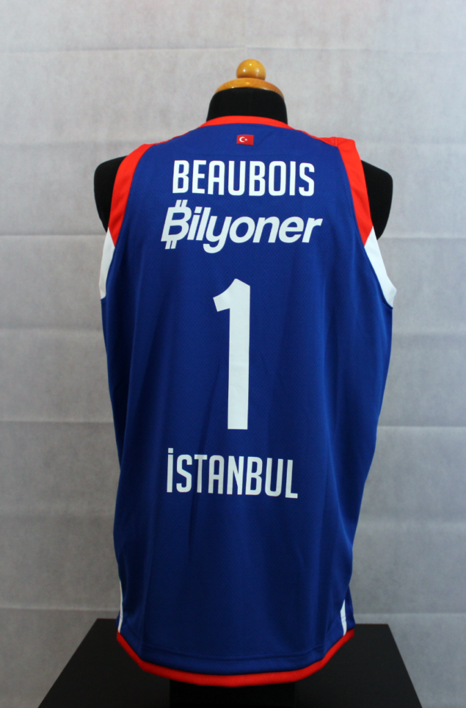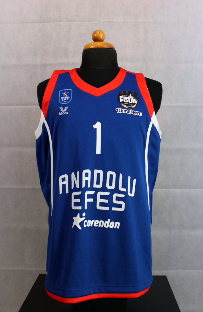 Rodrigue Beaubois has been one of the team's most important players throughout the season. In the Euroleague that season he had 35 appearances with 9.2 points per game and 1.9 assists. This jersey is one of the ones he had in the locker room at the 2022 Final 4. The patch used only in the Final 4 featured gold details as Efes was the previous year's trophy holder. In addition, underneath there is the oneteam logo which completed 10 years of life. Efes wore the same kit as the previous season however in the 2022 final, unlike in 2021, they wore the blue kits.